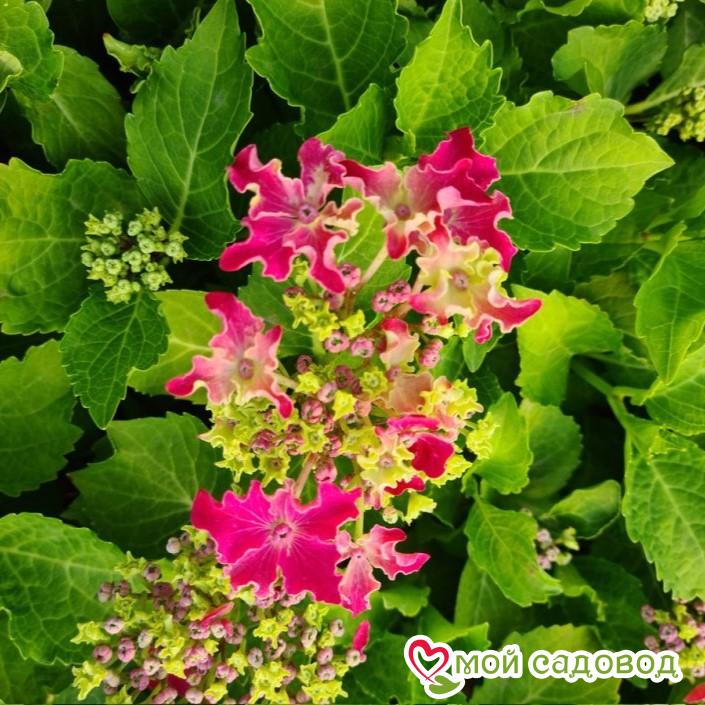Высота растения: 0,8 — 1м. Время цветения: середина июля — сентябрь. Форма соцветий: шаровидная. Цвет: ярко розовый. Размер соцветия: 20 — 25см. Аромат:  практически нет. Удивительное соцветие из курчавых цветков ярко-розовой окраски. Цвет изменяется от нежного зеленого до насыщенного розового. Зависит это от стадии роспуска, кислотности почвы. Соцветия крупные с продолжительным цветением до заморозков. Предпочитает кислые и слабокислые почвы, с обильным поливом хорошо дренированные. Для высадки предпочитает солнечные участки сада, спокойно чувствует себя в тенистых местах. Посадка гортензии: Перед посадкой гортензии, подготавливаем лунку 30х30х40, приготовленный саженец нужно поставить в центр посадочной ямы так, чтобы его корневая шейка не была сильно заглублена, далее вносим подготовленную смесь из земли, песка, торфа или перегноя. Вокруг растение следует тщательно засыпать почвой и утрамбовать, чтобы корни были хорошо прижаты и около них не образовалось пустоты. Обильно полить. В нашем интернет-магазине вы сможете купить Гортензия Так же возможно вас заинтересуют Гортензия крупнолистная Блауэр Цверг  и Гортензия крупнолистная Лёйхфейер
