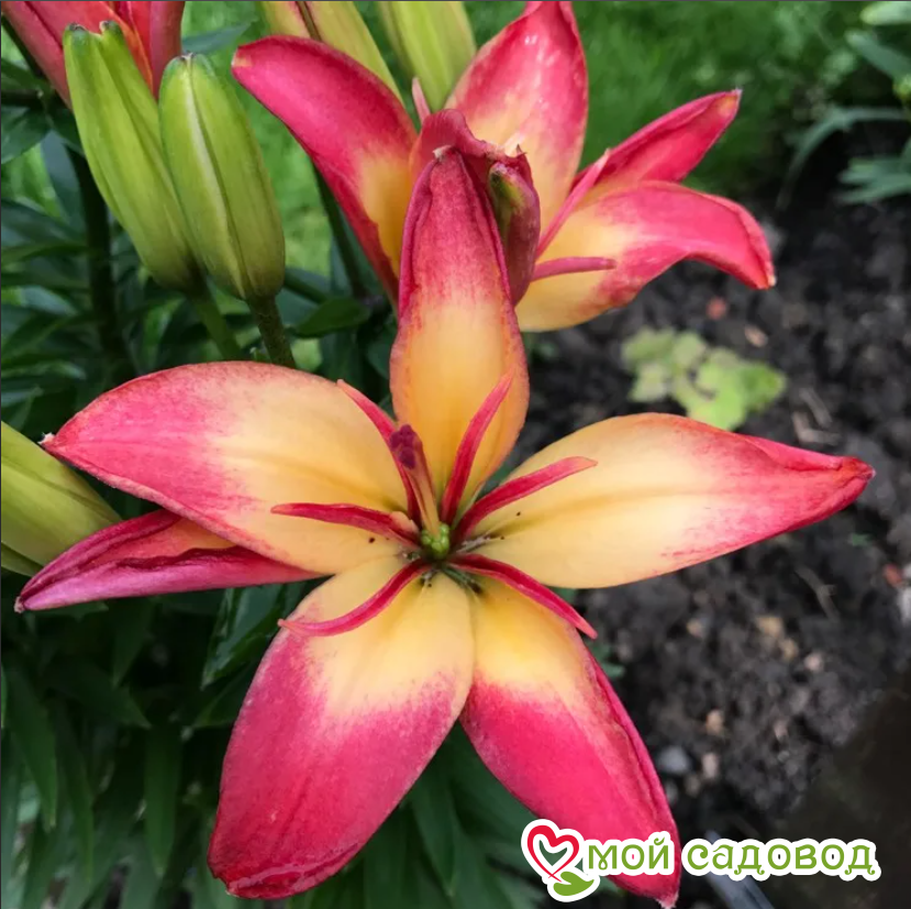 Низкорослое растение имеет крепкий, прямостоячий стебель, вырастающий до 25-40 см в высоту. Со всех сторон стебель усыпан ланцетными листьями зеленого цвета. Крупные цветки направлены вверх. Они имеют яркую насыщенность нежно-желтого цвета с розовыми кончиками и редким крапом в центре. Махровые цветки состоят из 2-х рядов лепестков с розовой каймой. Внешние лепестки широкие и эффектно подкручены назад, внутренние – более узкие, с вытянутыми сильно зауженными кончиками. Пыльники окрашены в рыжий тон. Посадка лилии: Глубина посадки лилии зависит от почвы. Если почва легкая – можно углубить на 12-13 см, что составляет 3-4 диаметра луковицы. Если же почва глинистая или тяжелая, достаточно двух диаметров, глубина лунки не более 5 см. В выкопанную ямку насыпьте слой песка, установите луковицу донышком на песок, присыпьте сверху остатками грунта, сверху замульчируйте. Уход за лилией: Пышных бутонов у лилий можно добиться, соблюдая обычные правила ухода: в первый год лилиям не нужна весенняя подкормка, удобрения вносятся разово за сезон, после цветения. Но это лишь в том случае, если перед посадкой вносилось удобрение. Перед началом цветения высокорослые сорта рекомендуется подвязать. После цветения засохшие бутоны удаляют. Полив умеренный: лучше не долить, чем перелить. Если цветок начал чахнуть и имеются подозрения на перелив – смешайте по столовой ложке речного песка и древесной золы, высыпьте под цветок и не поливайте ближайшую неделю. Полив лилии важно проводить под корень, старайтесь исключить попадание воды на листья, это провоцирует ожоги на солнце и распространение грибковых заболеваний.