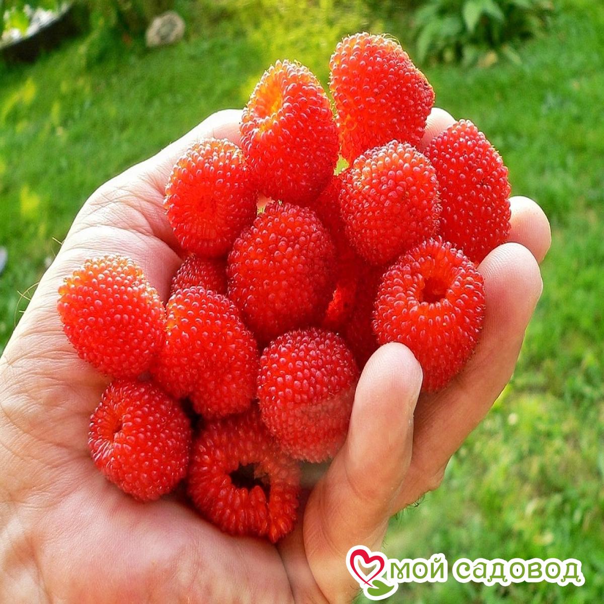Малино-клубника — это не гибрид малины и клубники, как может показаться на первый взгляд. Это редкое растение — земляничная малина (розолин), но ее часто называют МАЛИНИКОЙ, соединив названия двух ягод. От малины плоды взяли типичную коническую форму, обволакивающую плодоножку, а от клубники бесподобный аромат, свойственный дикоросам. В результате получилась дивная, аппетитная ягода — вкусная и нарядная. Невысокий шипастый полукустарник, быстро разрастающийся по сторонам. Побеги нужно ограничивать, иначе он займет большую площадь. Первые цветы появляются уже в год посадки, но их желательно оборвать, чтобы растение как следует укоренилось и набралось сил. Зато на второй год куст порадует хорошим урожаем. Вес ягод — до 4 грамм, вкус кисло-сладкий.