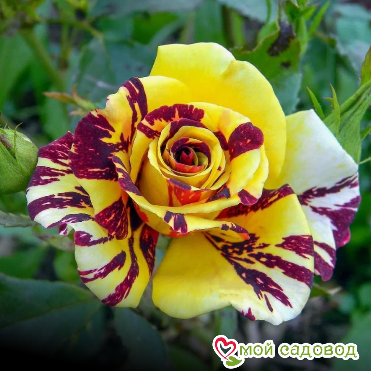 Роза Сим Салабим (Симсалабим, Simsalabim) – результат кропотливого селекционного процесса немецких инженеров-цветоводов агрохолдинга Kordes. Цветок относится к группе чайно-гибридных сортов и был получен в результате соединения ремонтантного гибрида и чайной розы. Гибридный сорт относится к компактным растениям и состоит из прямых отростков. Средняя высота взрослого растения находится в диапазоне от 70 см до 90 см, а диаметр кроны не превышает 60 см. Насыщенно-зеленые листовые пластины имеют средний размер и мелкозубчатые края. Форма цветков напоминает бокал, а их диаметр достигает 10 см. Лепестки насыщенно-лимонных цветов покрыты темно-бордовыми бархатными полосами, вкраплениями и точками. Основная цветовая гамма – желтая, красная. Оттенок бутонов яркий, насыщенный и очень пестрый. В одном цветке формируется около 25 махровых лепестков, раскрытие которых спиралевидное. Цветы благоухают легким, нежным и ненавязчивым ароматом. На одном стебле может сформироваться до 15 цветов, собранных в соцветия. Уход за розами заключается в систематическом рыхлении грунта, удалении сорняков, профилактике заболеваний, подкормке и обрезке. Подкормку роз проводят сезонно: азотом – весной, фосфором и калием – летом. Несмотря на засухоустойчивость, полив роз – процедура обязательная, особенно в жаркие и засушливые периоды. Поливают растения не холодной водой из расчета на куст 15-20 л воды, в сухую и теплую погоду – два раза в неделю. К концу лета полив сокращается и прекращается вовсе с наступлением сентября. В первый год допускать раннего цветения молодых растений не следует. Вплоть до начала августа бутоны роз с кустов удаляют. В августе оставляют по 1-2 цветка на каждом побеге и не срезают их, чтобы осенью завязались плоды. Побеги розы в таком случае лучше вызревают, хорошо перезимовывают и на будущий год обильно цветут. 2-летние саженцы ЗКС в мягкой упаковке. Перед упаковкой роз мы проводим обработку корней гидрогелем и пакуем их в обогащенный микроэлементами почвенный субстрат, что обеспечивает жизнеспособность саженцев по пути к вам. До посадки хранить при t 0+2°С. В нашем интернет-магазине вы сможете купить Чайно-гибридные розы Так же возможно вас заинтересуют Роза Версилия и Роза Геральдина